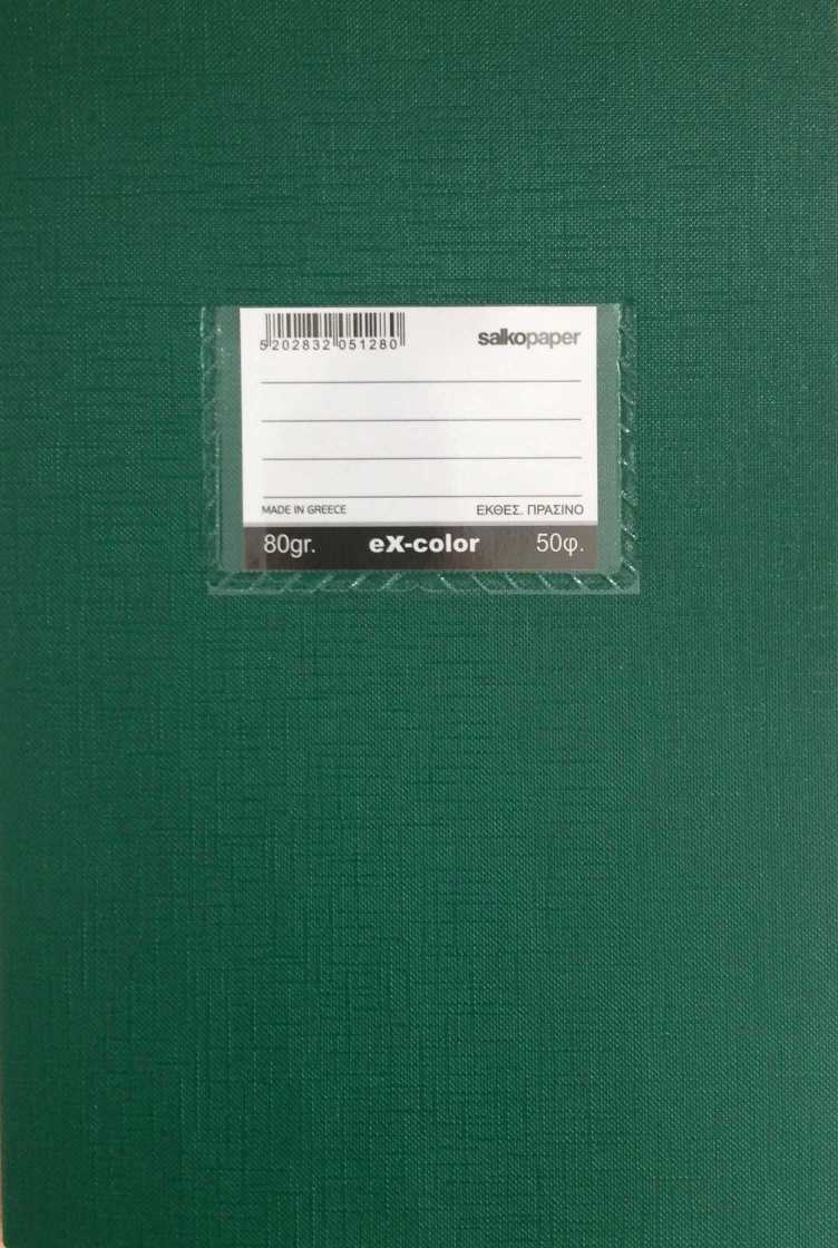 ΤΕΤΡΑΔΙΑ ΧΡΩΜΑΤΙΣΤΑ ΠΡΑΣΙΝΟ EX-COLOR 80g 17Χ25/50Φ ΡΙΓΕ (ΣΥΣ-15ΤΕΜ)