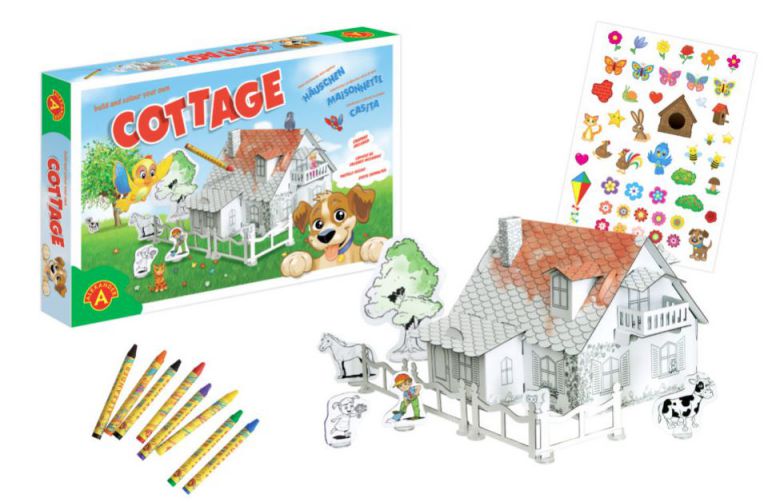 Φανταχτά σετ παιχνιδιού από χαρτόνι για να φτιάξετε και να ζωγραφίσετε μόνοι σας. Τα στοιχεία συναρμολογούνται εύκολα (δεν απαιτείται χρήση κόλλας). Η εύρεση, η αντιστοίχιση και η σύνδεση εξαρτημάτων είναι διασκεδαστική από μόνη της, ενώ είναι επίσης ένας πολύ καλός τρόπος για να εξασκήσετε τη χειρωνακτική επιδεξιότητα, την ακρίβεια και την υπομονή του παιδιού σας. Μόλις ολοκληρωθεί το κτίριό σας, μπορεί να περιβάλλεται από φράχτη, δέντρα και φιγούρες τοποθετημένες σε πλαστικές βάσεις. Αφού συναρμολογήσετε ολόκληρο το σετ, ξεκινά το δεύτερο στάδιο διασκέδασης. Μπορείτε να χρωματίσετε το κτίριο και όλα τα πρόσθετα στοιχεία όπως θέλετε με χρώματα ή κραγιόνια και στη συνέχεια να διακοσμήσετε τα πάντα με μια επιλογή από αυτοκόλλητα που περιλαμβάνονται στο σετ.