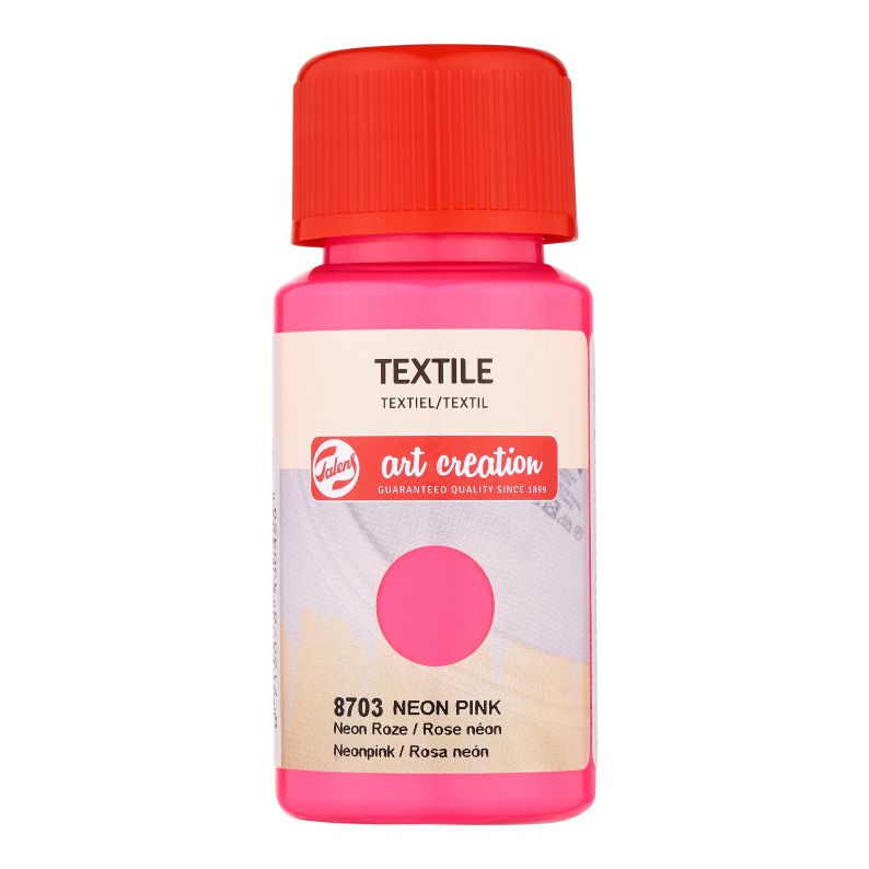 Upcycle ρούχα, αξεσουάρ ή εσωτερικά διακοσμητικά, όπως καλύμματα μαξιλαριών, κουρτίνες και άλλα υφασμάτινα είδη με μπογιά Talens Art Creation Textile! Το Textile είναι μια βαφή για ανοιχτόχρωμα υφάσματα (τουλάχιστον 50% βαμβάκι) και διατίθεται σε 40 χρώματα, συμπεριλαμβανομένων μαργαριταρένιων, νέον και παστέλ αποχρώσεων. Η σειρά περιλαμβάνει επίσης Reflex, μια ανακλαστική βαφή (για ανοιχτόχρωμα και σκουρόχρωμα υφάσματα) και Nightlight για εφέ λάμψης στο σκοτάδι. Απολαύστε τη δημιουργία των δικών σας σχεδίων σε ύφασμα!